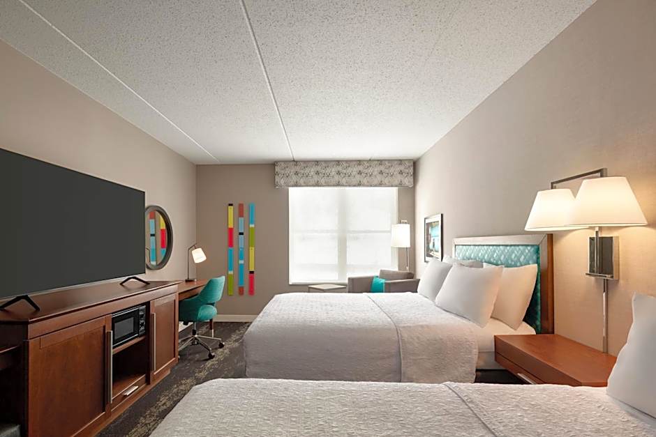 The Hampton Inn at Tin Lizzie Gaming Resort offers a variety of room types including suites, triple rooms, family rooms, and quadruple rooms. Smoking is not allowed in any of the rooms. The rooms range in size from 301 sqft to 5382 sqft. The occupancy capacity varies from accommodating 3 adults and 2 children to 5 adults and 4 children. The bed sizes include king size beds, queen size beds, and sofa beds.