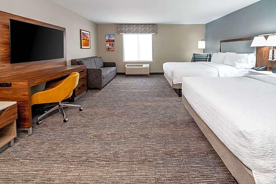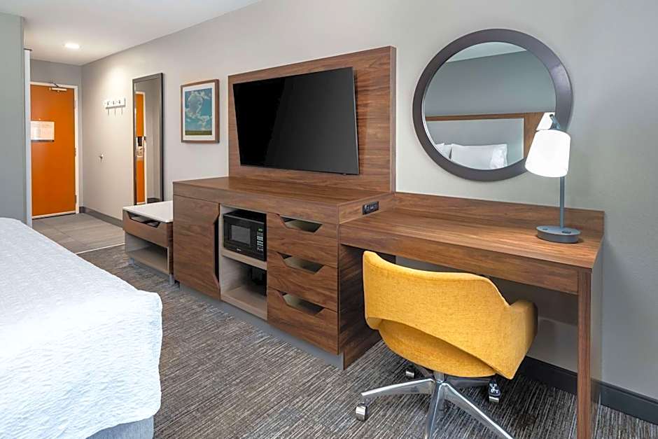 The Hampton Inn Mitchell offers a variety of room types including suites with one bedroom, one king bed, and a sofa bed. The occupancy for most rooms is 2 adults and 1 child, with smoking not allowed in any room. Bed sizes range from one king to two queens, with some rooms being hearing/mobility accessible.