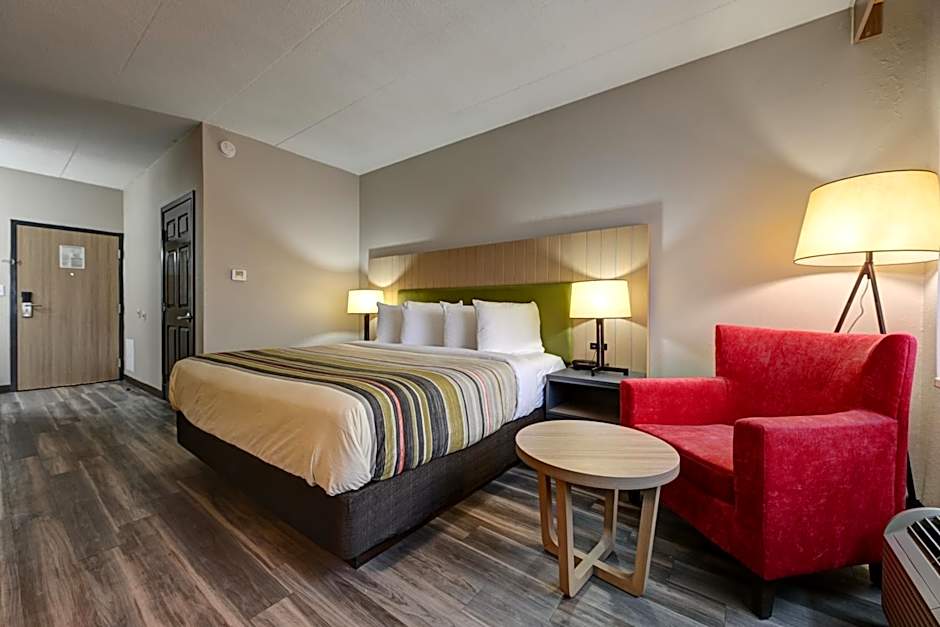 For those seeking a bit of extra space and comfort, the King Suite at Country Inn & Suites by Radisson is a fantastic option. This non-smoking suite boasts a generous room size of 388 square feet, providing ample space to relax and rejuvenate. The suite features a plush king-size bed for a restful night's sleep and a convenient sofa bed, perfect for accommodating an additional guest or simply lounging after a day of sightseeing.