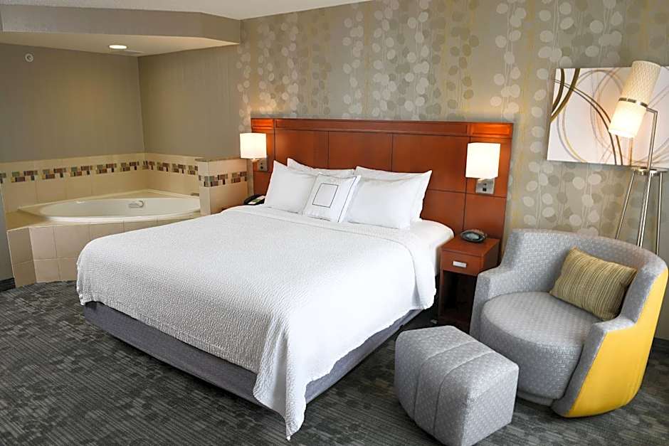 The hotel offers several types of rooms including larger guest rooms with 1 king bed and a sofa bed, 1-bedroom 2-room suites with 1 king bed, a sofa bed, and a courtyard view, king rooms with sofa beds and adapted tub (mobility accessible), queen rooms with two queen beds, and king rooms with sofa beds. Smoking is not allowed in any of these rooms. The rooms accommodate 4 adults and 3 children and have either king beds or queen beds with the addition of sofa beds.