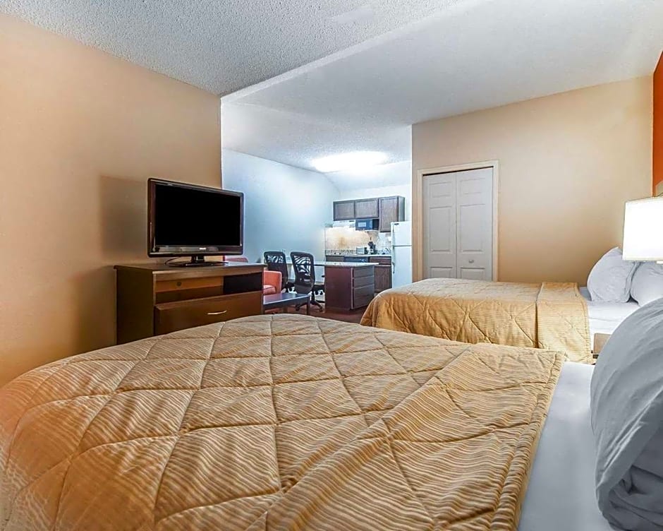 I thought this place was an exceptional stay. considering some of the reviews i had read, when i arrived to the facility and checked in the room was wonderful. the room was clean and smelled clean. the room was not outdated, i stayed for 3 days and not one bug in sight. everything worked properly. i loved that the place had a full kitchen, the cabinets had plates, bowls, pots, cups, toaster, strainer and there were silverware. there is also a dishwasher that ran well. at this facility there is free breakfast. not a lot to choose from, but the choices you have are worth it, in my experience at hotels this place has the best free breakfast i’ve had. if you stay i suggest the blueberry muffins! they were my favorite. over the coarse of my stay i had the pleasure of trying the blueberry muffins, chocolate muffins, sausage, eggs, biscuits and gravy, strawberry and banana yougurt, bagels, toast and you can make your own waffles! toiletries that are provided for you for free are conditioning shampoo and soap. so if you wish to have more you should bring your own. they do have other supplies you can buy as well. staff was great, and there if i needed anything. i really enjoyed my stay here and if you stay i hope you do too!