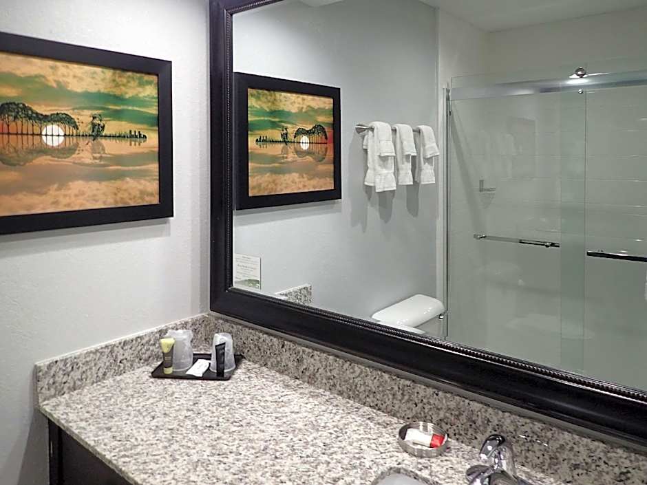 Location got us back on the Interstate easy enough. Staff was efficient and friendly. Bed was very comfortable. Towels were nice and fluffy so well as abundant. Lights around the bed gave a nice vibe. Refrigerator was cold but could have been a little colder, but did the job. Very quiet, never heard other guests.