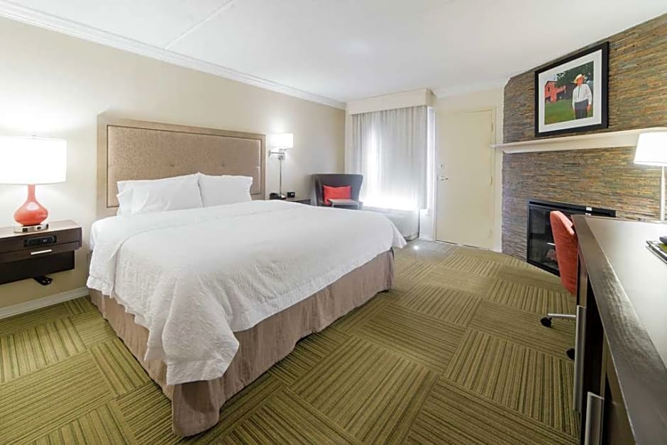 Whirlpool, free WiFi, 32-inch TV, easy chair with ottoman, coffeemaker, work desk, shower This spacious non-smoking guest room features our clean and fresh Hampton king-sized bed®, a comfortable easy chair with ottoman, and a 32-inch LCD TV. Catch up on work at the desk or surf the web with free WiFi access. Refresh in the bathroom which a WaterPik showerhead and curved shower rod that allows more light and space in the shower. No roll away beds or cots available per Fire Marshall.