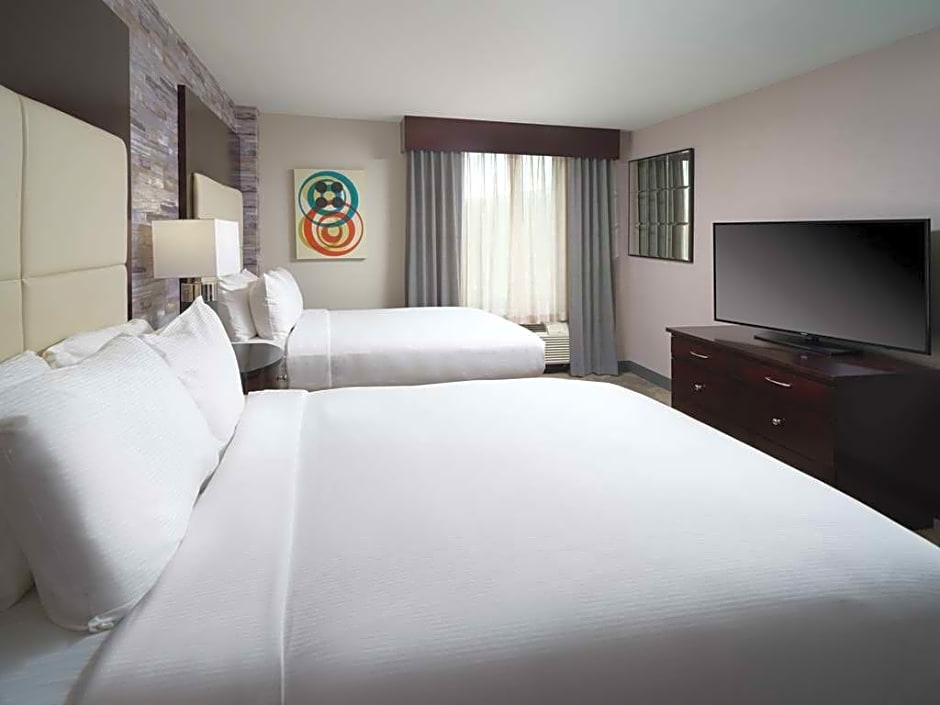 Complimentary WiFi, coffeemaker, 32-inch LCD TV, deluxe bath products Relax in this room featuring two queen-sized Sweet Dreams® beds with 5 jumbo hypoallergenic down pillows. Relax in the oversized chair with ottoman and watch the 32-inch LCD TV. Work at the desk with ergonomic chair and keep in touch with complimentary WiFi. The bathroom features large vanity space, lighted makeup mirror and full length dressing mirror. Special touches include a coffeemaker, combed cotton terry and luxurious bath products.