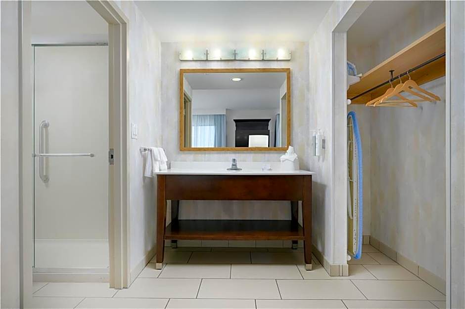 The hotel offers a variety of rooms including queen rooms with two queen beds, king rooms with sofa bed, king rooms with bath tub, queen rooms with roll-in shower, king rooms, one king accessible tub rooms, queen rooms with two queen beds and accessible tub, king studio rooms, and king studio rooms with hearing accessibility. Smoking is not allowed in all rooms. The rooms can accommodate either 2 or 4 adults and have bed sizes of either queen or king. Room sizes range from 323 sqft for some king rooms and studios.