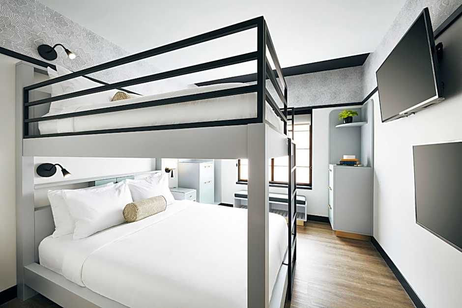 My daughter and I stayed here for a weekend for her lacrosse tournament. We were welcomed as soon as we walked in the door. The front desk staff and valet attendants were very friendly and helpful every time we passed by. My daughter insisted on getting a queen bunk bed room which she loved! It was on the smaller side, but it worked for us and the double TVs were a hit. Only issue I had was there wasn't a chair to sit in so I was stuck on the bottom bunk. Not a huge deal but it would have been nice to have. There is bench seat under the window, but it doesn't have a back to it so not the most comfortable. We loved that the floors are wood instead of carpet as it felt much cleaner than other hotels! Great bathroom with a rain shower head with good water pressure. They also had bottles of water in the room refrigerator and by the elevator in the lobby. The location was excellent and we walked to local restaurants for dinner and got ice cream next door at Clumpie's both nights. We will definitely stay here again!