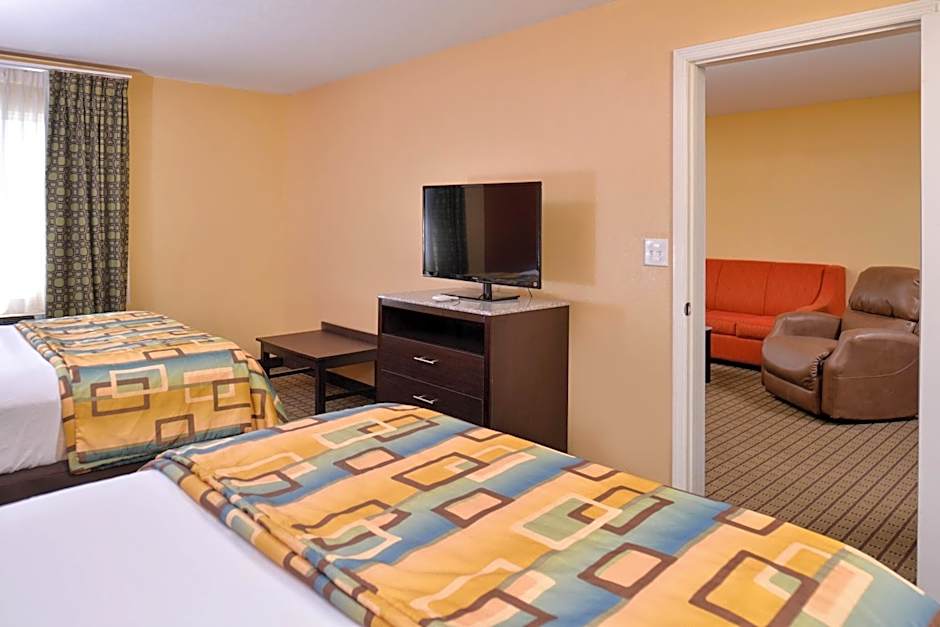 The types of rooms available at Douglas Inn & Suites include Family Suites, King Rooms, and Queen Rooms with Two Queen Beds. The Family Suite is the largest room, with a size of 614 sqft and can accommodate 5 adults and 3 children. The King Room is a double room, with a size of 248 sqft and accommodates 2 adults and 1 child. The Queen Room with Two Queen Beds is a quadruple room, with a size of 312 sqft and can accommodate 4 adults and 2 children. Smoking is not allowed in any of these rooms.