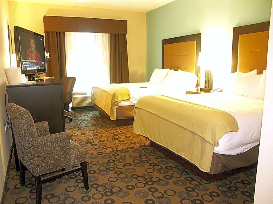 At the Holiday Inn Express & Suites - Cleveland Northwest, guests can choose from a variety of rooms including executive double suites, queen rooms with two queen beds, standard king rooms, and one-bedroom suites. All rooms are non-smoking and range in size from 205 sqft to 248 sqft. The rooms can accommodate anywhere from 2 to 6 adults, with various bed configurations including double beds, queen beds, and king beds.