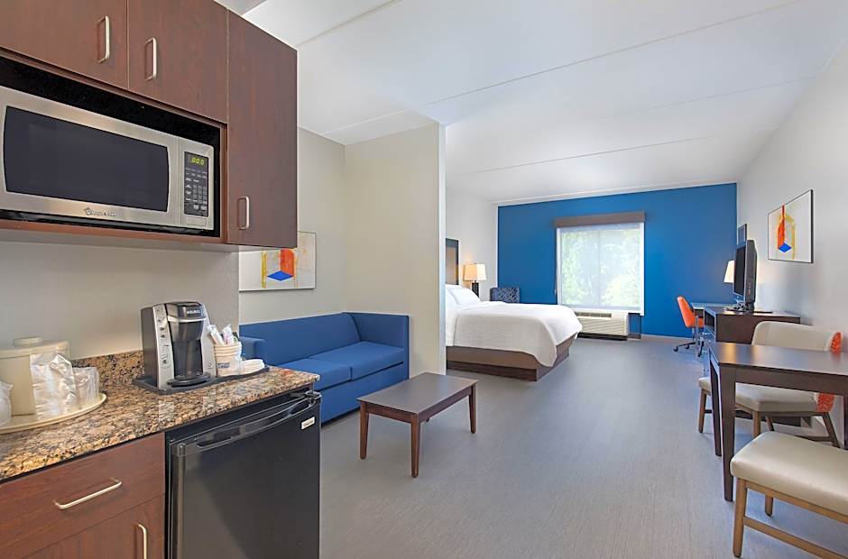 This suite features a microwave, small refrigerator, and flat-screen television.