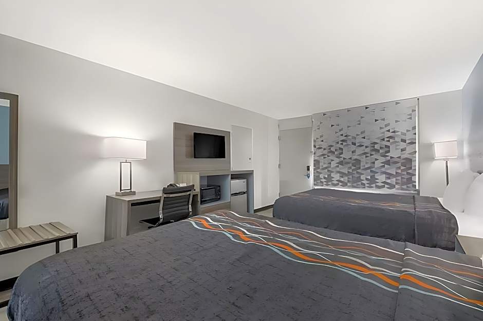 The Rodeway Inn offers various room types, including Standard King Rooms and Efficiency Queen Suites, all of which are non-smoking. The rooms accommodate 2 adults and 1 child, with bed sizes ranging from King to Queen. The hotel also provides accessible King Rooms for guests with specific needs.