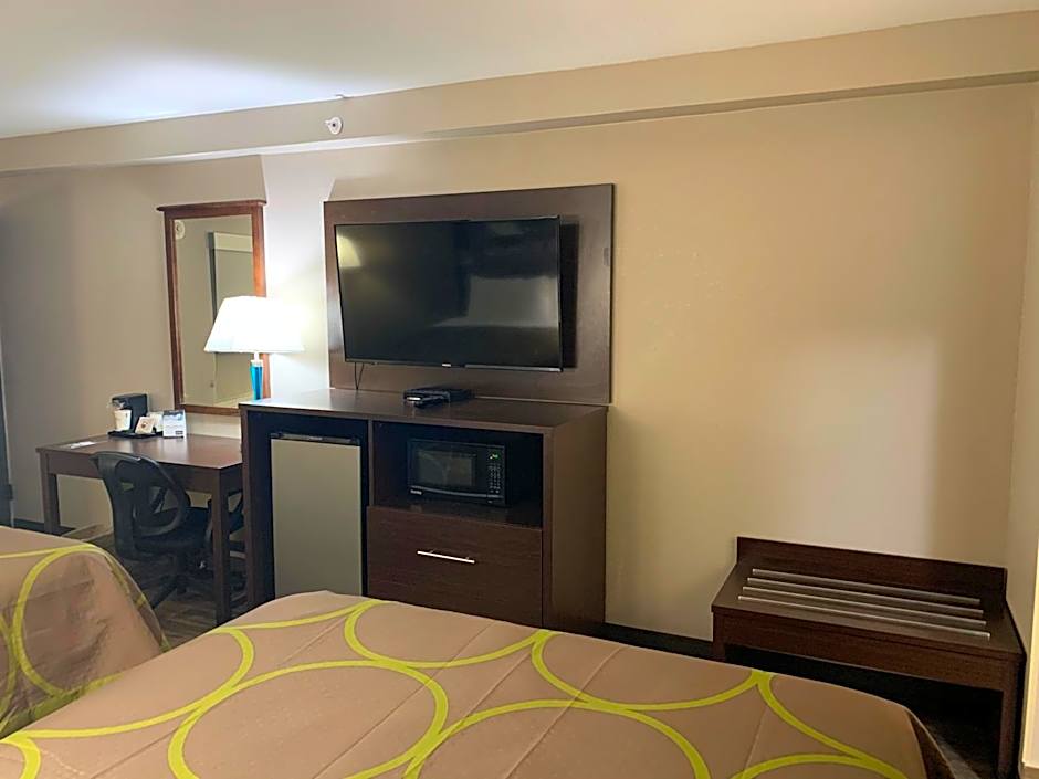 The Super 8 by Wyndham Cookeville, TN offers three types of rooms. The Queen Room with Two Queen Beds - Non-Smoking can accommodate 4 adults and 2 children, while the King Room - Non-Smoking can accommodate 3 adults and 1 child. There is also a King Room - Mobility Access/Non-Smoking available that can accommodate 2 adults and 1 child. All rooms have a size of 301 sqft and smoking is not allowed.