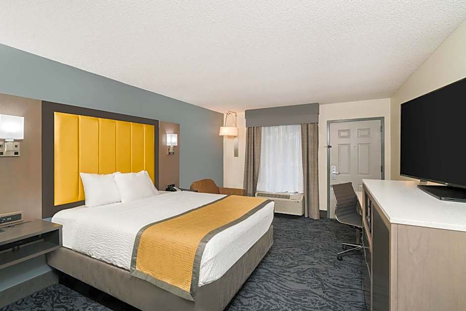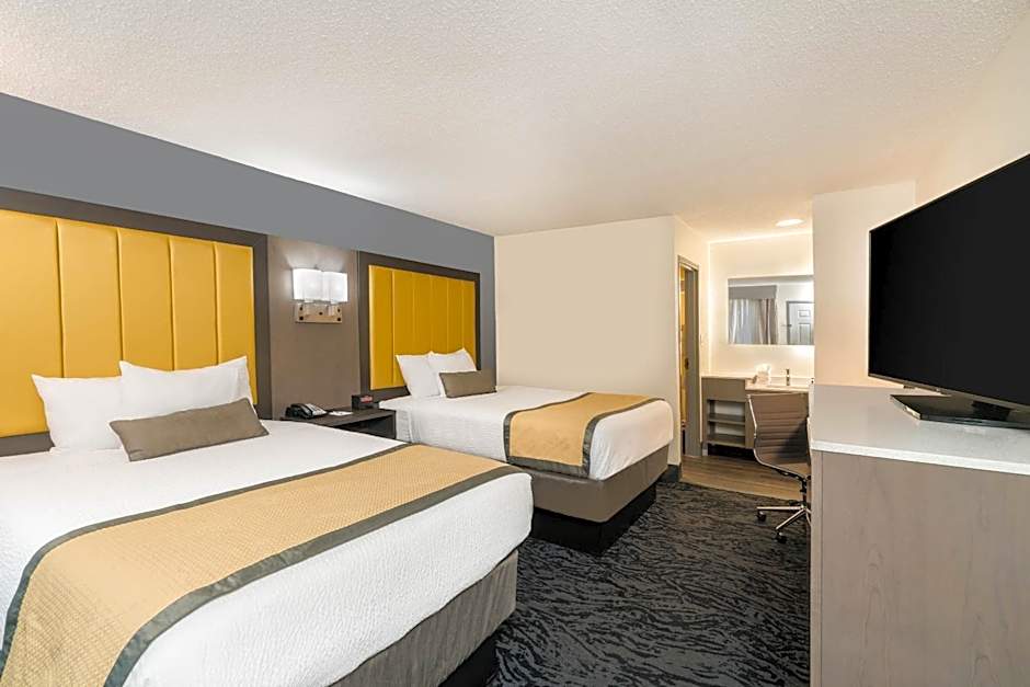 The Baymont by Wyndham Franklin hotel offers a variety of room options including Double, Queen, King, and Suite rooms. All rooms are non-smoking with a room size of 280 sqft. The occupancy varies, accommodating either 2 adults and 1 child or 4 adults and 3 children. The bed sizes range from a Double, Queen, or King bed depending on the room selected.