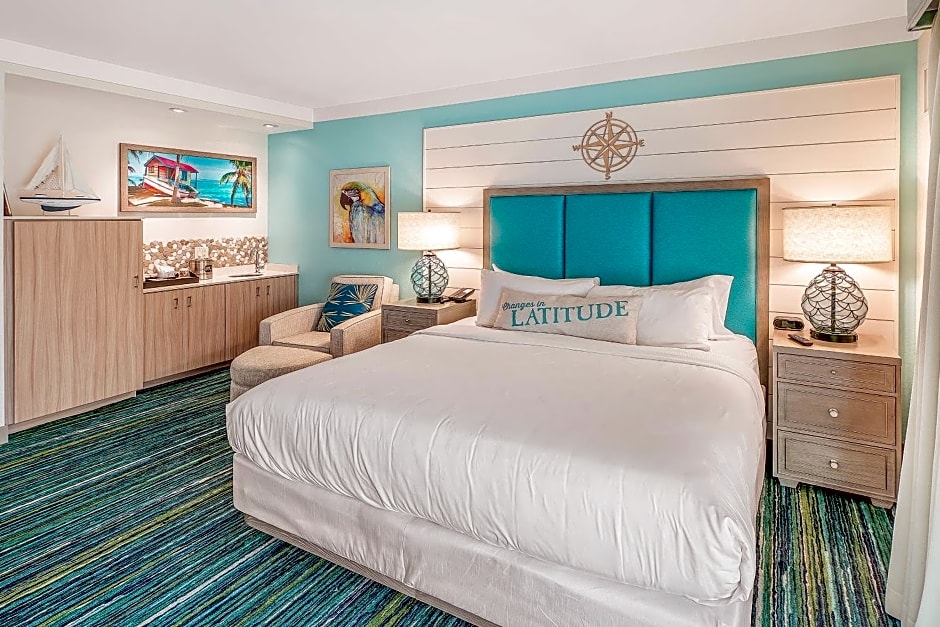 The Margaritaville Resort Gatlinburg offers a variety of room types including King Guest Rooms, Double Queen ADA Guest Rooms, King Pool Facing Guest Rooms, King Deluxe with Sleeper Sofa ADA Rooms, Double Queen One Bedroom ADA Suites, Double Queen One Bedroom Suites, King Deluxe with Sleeper Sofa Rooms, Double Queen Pool Facing Guest Rooms, and Double Queen Guest Rooms. The rooms range in occupancy from 2 adults and 1 child to 6 adults and 4 children. Smoking is not allowed in any of the rooms. The beds offered include King size beds, Queen size beds, and sofa beds.