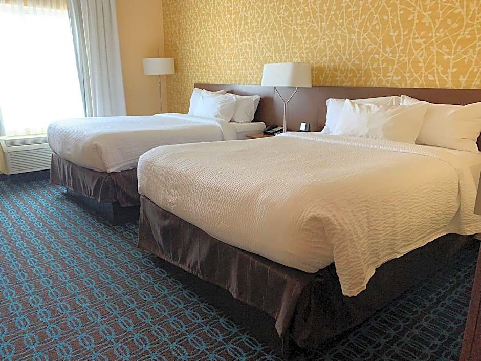 The Fairfield Inn & Suites by Marriott Johnson City offers King Rooms and Queen Rooms with Two Queen Beds. The King Room is non-smoking, has a room size of 301 sqft, and accommodates 2 adults and 1 child. It features a King size bed. The Queen Room Two Queen Beds is also non-smoking, with a larger room size of 355 sqft, and accommodates 4 adults and 1 child. It features 2 Queen size beds.