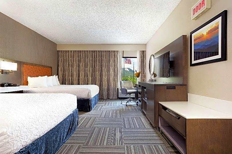 The Hampton Inn Kingsport offers a variety of room options including Double, Quadruple, and Hearing Accessible rooms. Smoking is not allowed in any of the rooms. The bed sizes range from King size to Double beds, with some rooms also offering a sofa bed. The rooms can accommodate between 2 and 4 adults, and 1 to 3 children.
