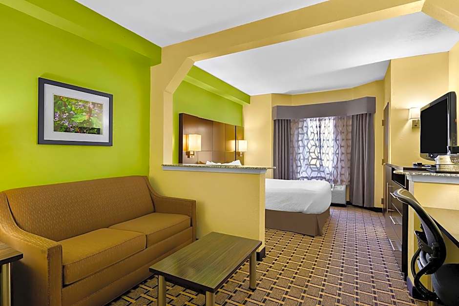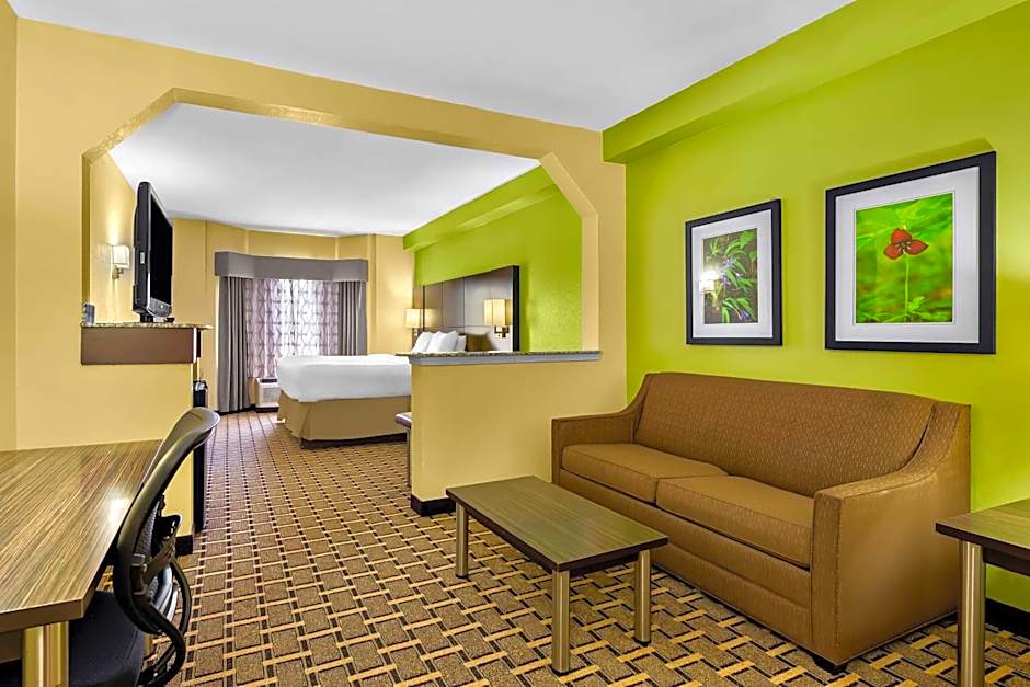 The Best Western Knoxville Suites - Downtown offers a variety of comfortable and spacious suites to accommodate your needs. Whether you're traveling with a large group or prefer extra space to spread out, the Queen Suite, King Suite, and Queen Suite with Roll In Shower are perfect choices. Each suite features a separate living area and bedroom, ensuring privacy and relaxation during your stay. With amenities such as air conditioning, non-smoking rooms, and first aid kits available, this hotel ensures that your comfort and safety are a top priority. So why wait? Book your stay at the Best Western Knoxville Suites - Downtown starting from $106 and experience a fantastic getaway in the heart of the city.