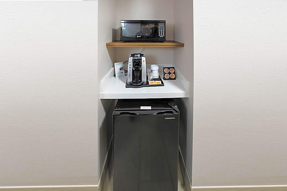 This room features a microwave and refrigerator.