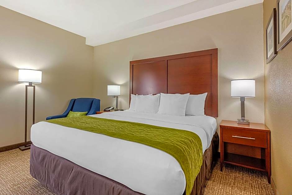 The Comfort Inn Lenoir City offers a variety of rooms, including King Rooms with accessible tubs, King Rooms, Queen Rooms with two queen beds, Superior Queen Suites with two queen beds, King Rooms with roll-in showers, and Superior King Suites. All rooms are non-smoking. The King Room can accommodate up to 3 adults and 2 children, while the Queen Room can accommodate up to 4 adults and 3 children. The Superior Queen Suite can accommodate up to 5 adults and 4 children, and the Superior King Suite can accommodate up to 3 adults and 2 children.