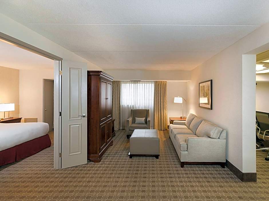 The DoubleTree Suites by Hilton Nashville Airport offers a variety of room options, including King Suites, One King Suites accessible with a tub, and Queen Suites with two queen beds and a sofa bed. All rooms are non-smoking and range in size from 323 to 452 square feet. The rooms can accommodate between 4 and 5 adults, along with 3 to 4 children.