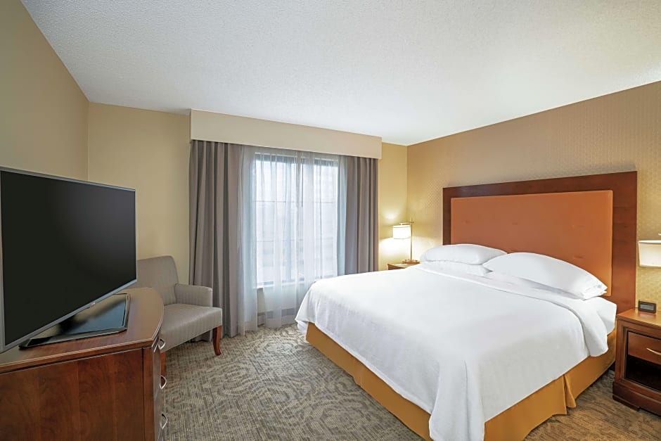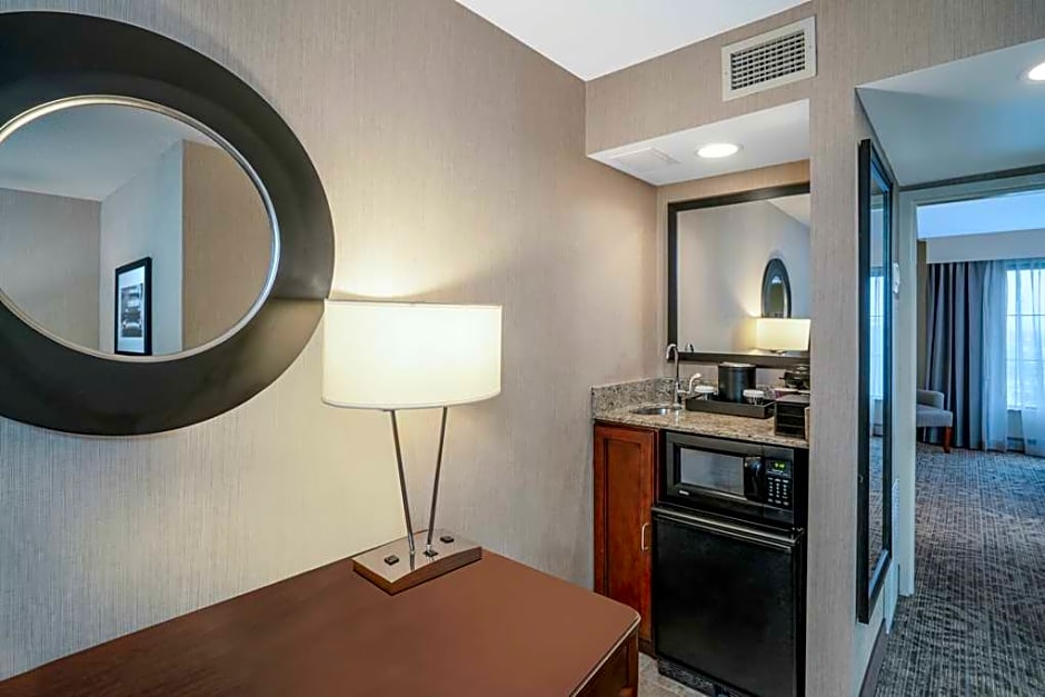 Embassy Suites Nashville - at Vanderbilt offers various types of rooms, including One King Suite Accessible with Tub Non-Smoking, King Suite - Disability Access/Non-Smoking, Non-Smoking Double Suite, and King Suite - Non-Smoking. These rooms have different sizes ranging from 301 sqft to 398 sqft. All rooms are non-smoking, and they can accommodate between 4 and 6 adults, with various bed configurations such as King size beds, double beds, or sofa beds.
