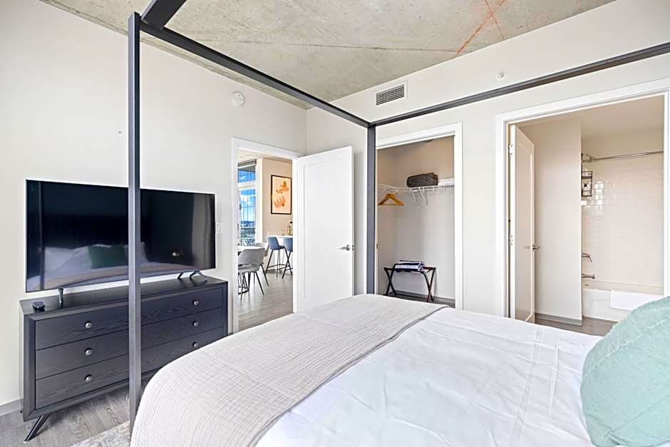 Plenty of space to spread out with two bedrooms, two bathrooms, a chef-ready kitchen, a workspace, and a balcony to take in downtown Nashville’s sights from unbelievable heights.