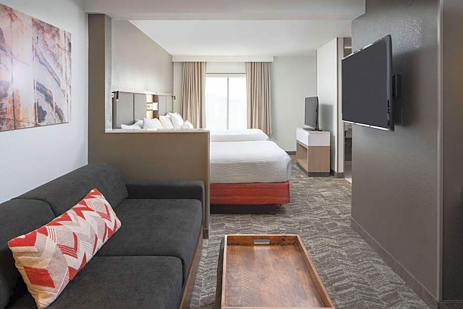 At Sonesta Select Nashville Airport Suites, the available room types are Two Doubles Suite, Hearing Accessible Two Doubles Suite, King Suite, Mobility Accessible Two Doubles Suite Roll-In Shower, Hearing Accessible King Suite, Mobility Accessible King Suite Tub, Mobility Accessible King Suite Roll-In Shower, and Mobility Accessible Two Doubles Suite Tub. All rooms have a size of either 280 sqft or 334 sqft. None of the rooms allow smoking. The occupancy varies, with some rooms accommodating 3 adults and 2 children, while others accommodate 5 adults and 4 children. The beds offered in the rooms are either double bed(s) or a king size bed, with the addition of a sofa bed in all rooms.