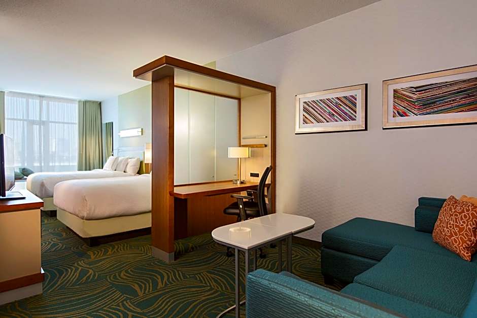 The SpringHill Suites by Marriott Nashville Vanderbilt/West End offers Queen Suites with Sofa Beds, King Suites with Sofa Beds, and King Suites with Sofa Beds that are Hearing Accessible. Smoking is not allowed in any of these rooms. The rooms can accommodate 4 adults and 3 children. The Queen Suites and King Suites both feature a King size bed, while the Hearing Accessible Suite also includes a Sofa Bed.