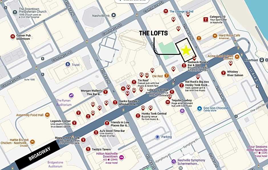 The Lofts at 107 is an apart-hotel in Nashville, United States. Located in Tennessee at 107 2nd Avenue North, it sits about 0,6 mi from the city center. With 99 reviews and a minimum price starting from $393 per night, this adults-only retreat blends independence with modern comfort.
