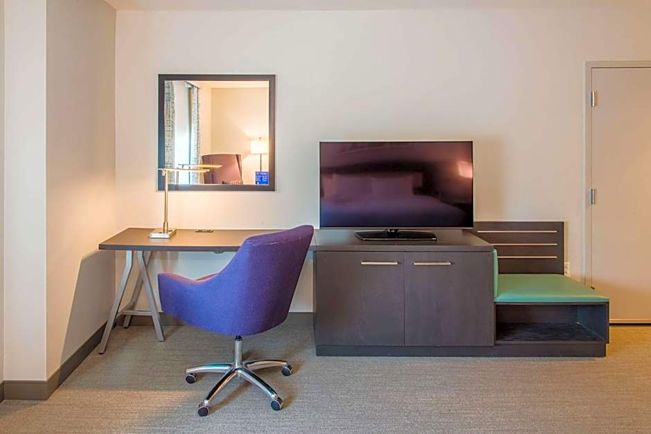 There is no place to park in front of the hotel. Fortunately, we are very mobile and healthy. It wasn't entirely clear which back door was for Hilton Garden and which was for the Home2 Suites, which was embedded within one building. A three-night stay for us (with no frills but bottled water) was over $500, so be prepared to for these prices for a three-star neighborhood hotel. This is not unique to the industry, however. Otherwise, the staff was very friendly and professional. Comfortable king bed. There was a sliding barn door to the bathroom(?) that somewhat limited privacy. Hot shower and water pressure a plus. We would stay here again.