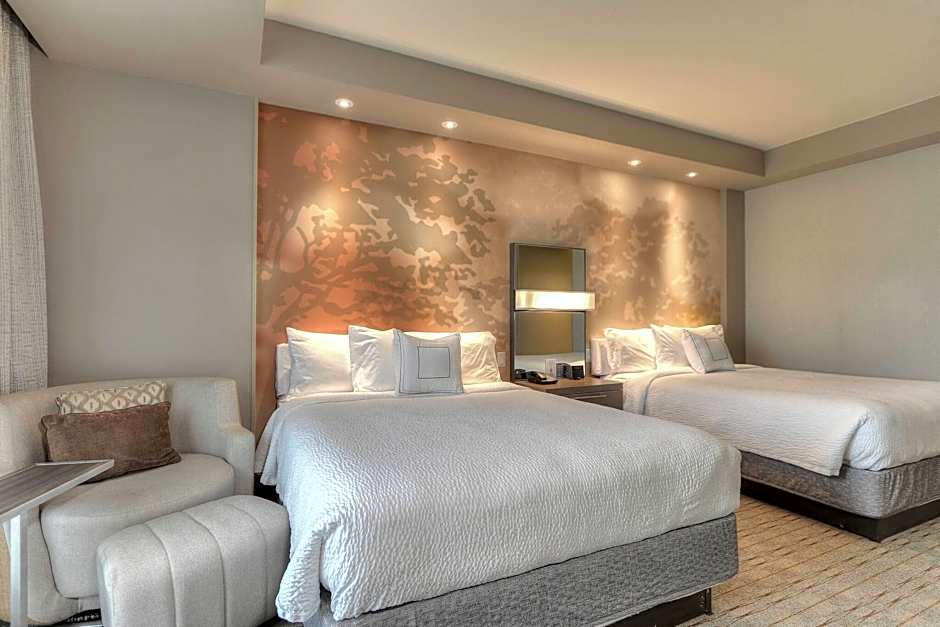 The Courtyard by Marriott Pigeon Forge offers various types of rooms with different bed and room sizes. These include rooms with 2 Queen beds, a Sofa bed, and a balcony with either a mountain or river view. There are also rooms with 1 King bed, a Sofa bed, and a balcony with a mountain or river view. Smoking is not allowed in any of the rooms. The rooms accommodate different numbers of adults and children, ranging from 3 adults and 2 children, to 5 adults and 4 children.