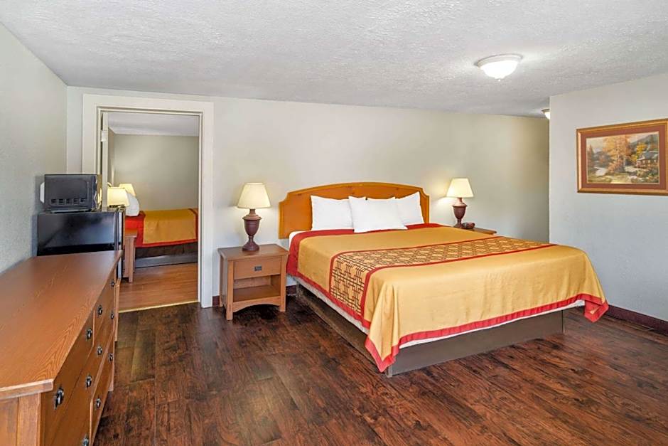 The Travelodge by Wyndham Pigeon Forge offers a variety of room types. These include Deluxe King Rooms and King Rooms with Mountain Views, both of which are non-smoking and can accommodate 2 adults and 1 child. There are also King Rooms with Mobility Access and regular King Rooms, both non-smoking and accommodating 2 adults and 1 child. The hotel also has Queen Rooms with Two Queen Beds, which can accommodate 4 adults and 3 children. Lastly, they offer Two-Bedroom Suites with a King and Queen bed, accommodating 4 adults and 3 children. All rooms have a size of 301 sqft.