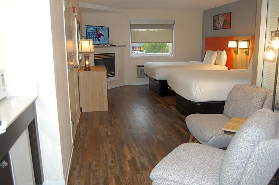 This suite features a fireplace, microwave, and a refrigerator as well as a flat-screen TV.