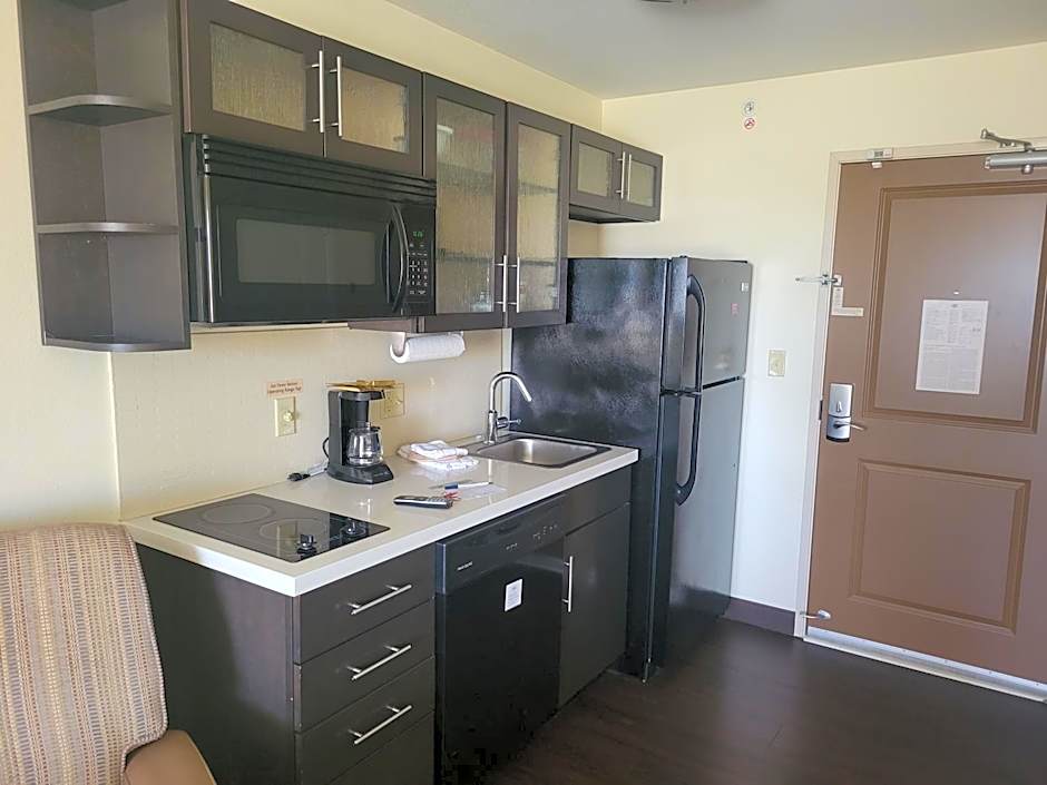 Guests can make meals in the kitchenette that features a stovetop, a refrigerator, a dishwasher and kitchenware. This wheelchair accessible suite has air conditioning, a seating area with a flat-screen TV and a toilet with grab rails. The unit has 1 bed.