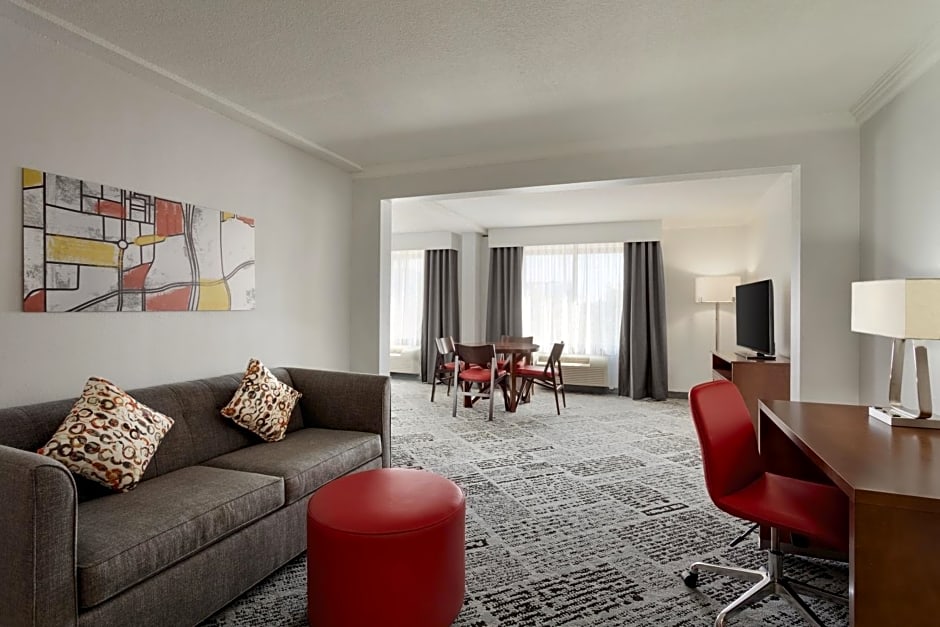 The air-conditioned suite has 1 bedroom and 1 bathroom with a bath and a shower. The suite features carpeted floors, a seating area with a flat-screen TV with streaming services, a tea and coffee maker, a safe deposit box, as well as a sofa. The unit has 1 bed.