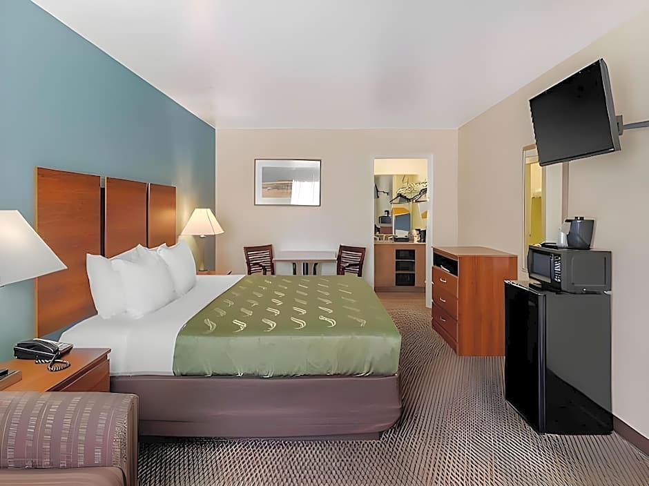 Inside, a variety of room types caters to different needs, including King Rooms, Queen Rooms, Studios, and several Suites.