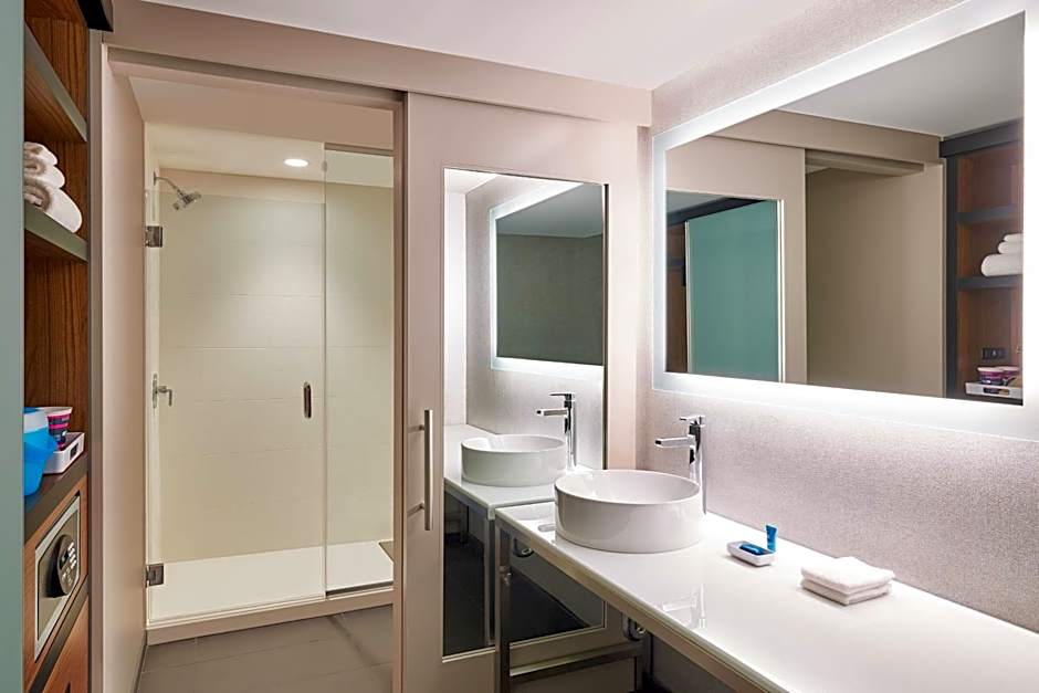 The Aloft Austin Downtown offers a variety of room types to suit every traveler's needs. Whether you're traveling with family or friends, there's a room that's perfect for you. The Double Queen View Room offers stunning city views and can comfortably accommodate up to 2 adults and 3 children. If you're looking for accessible features, the King Room with Roll-in Shower - Mobility and Hearing Accessible is designed to cater to your needs. For a stylish and comfortable stay, the King Room or the Double Queen Room offers spacious accommodations with modern amenities. With these room options, you can find the perfect space to relax and recharge after a day of exploring Austin's vibrant downtown scene.