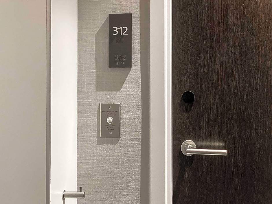 1 KING TERRACE HEARING ACCESSIBLE, VIS DOORBELL ALRT AND VIS PHONE ALRT, 349 SQ FT-NESPRESSO-FRIDGE-SERTA CANOPY BED