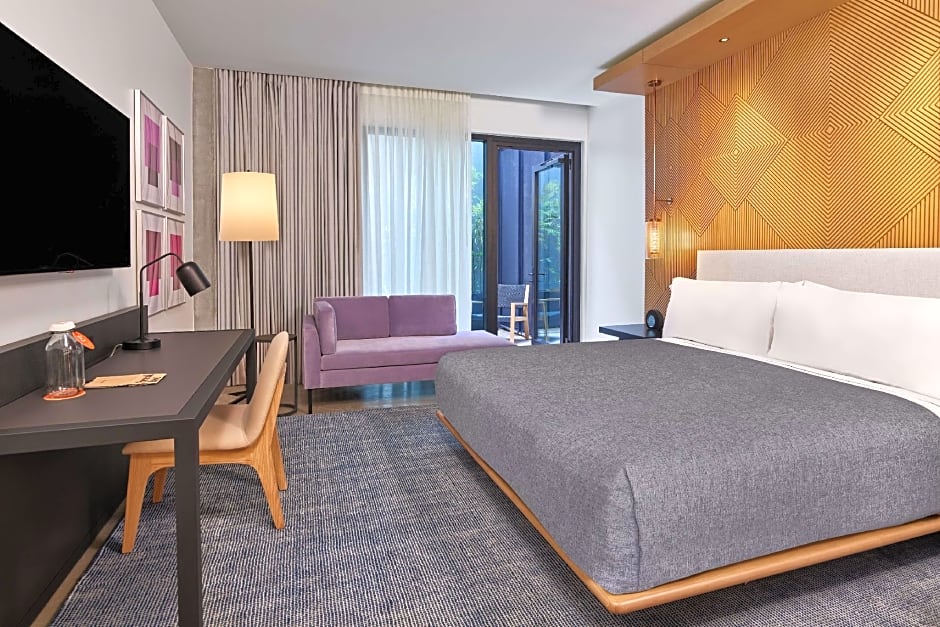 Excellent on-site restaurant Verbena is probably the most sophisticated eatery by far in that immediate vicinity. Serves breakfast, lunch, dinner, and also cocktails, happy hour, etc. Cocktails were well-made, without skimping on the liquor. Menu doesn't bludgeon you over the head with Texan touches - in fact, food was pleasantly cosmopolitan. I would come to Verbena even if I wasn't staying at the hotel. Great outdoor dining tables. King room was more spacious than expected. One subtle thing that really stands out is the thoughtful room design - you know you are in the hands of a major hotel chain because the room, furniture and space really works for travellers. Unlike short-term vacation rentals or one-off boutique hotels with their showpiece nonsense decor that actually offer you no space to put your luggage. The location means you're right on the retail street with bars, pubs, etc. Whole Foods HQ is nearby for all your needs. Hotel staff very upbeat and super nice with any requests. Rooms feel brand new and very clean.