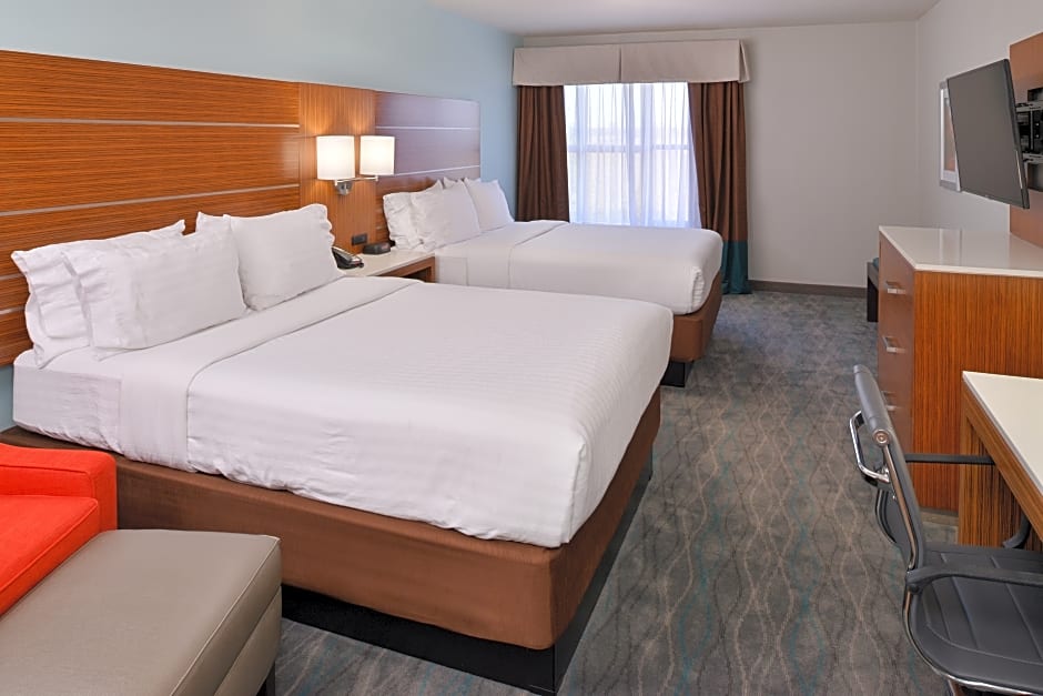 The Holiday Inn Express Austin North Central offers a variety of room options. They have Queen Rooms with Two Queen Beds, King Rooms with Sofa Beds, Deluxe King Suites, TwinDouble Rooms with a King and Double Beds, and several disability access rooms. All rooms are non-smoking, with a room size of 301 sqft for most options, and can accommodate either 2 adults and 1 child or 4 adults and 3 children.