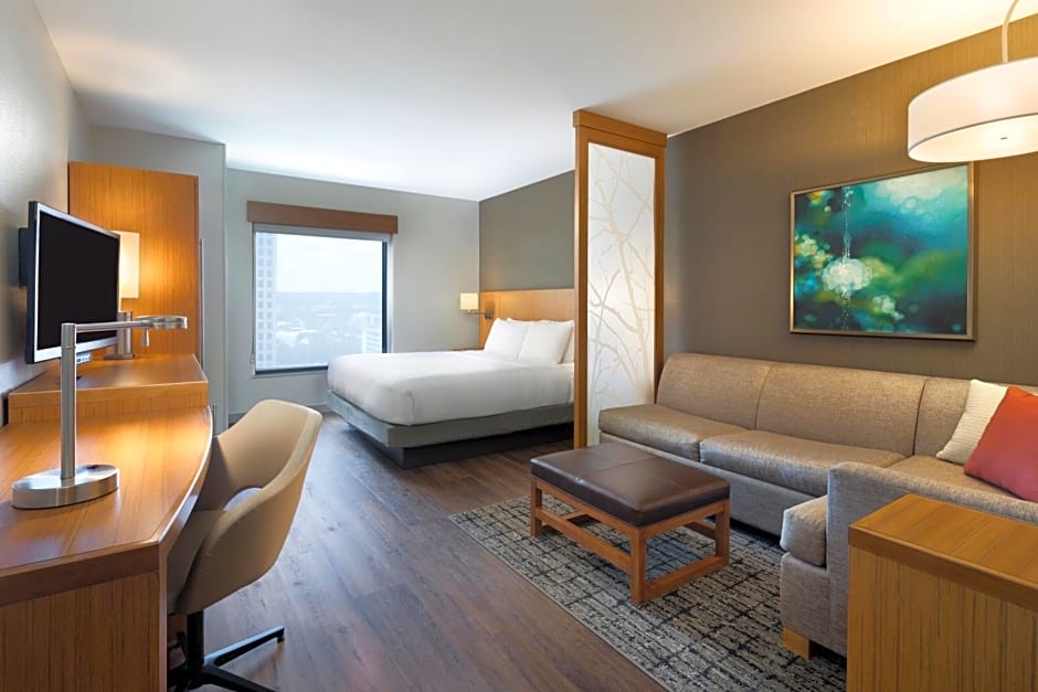 Where can guests find entertainment in Hyatt Place Austin Downtown?