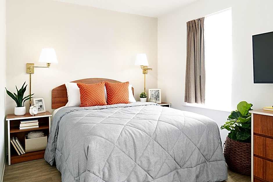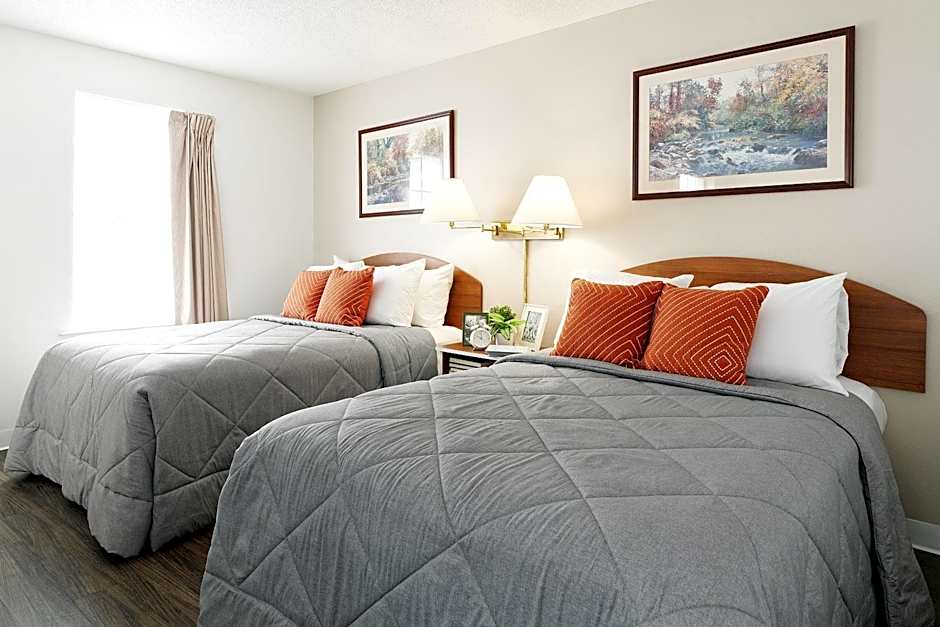 This suite features a kitchenette with a microwave, refrigerator, and stovetop. It is equipped with a cable TV with premium channels as well as a telephone with free local calling.