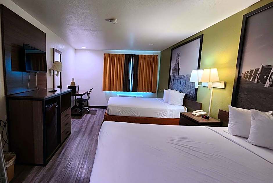 2 Queen Beds Suite Smoking is 301 square feet and includes 2 queen-size beds 150-154 width plus desk and satellite tv and is Wheelchair-accessible.