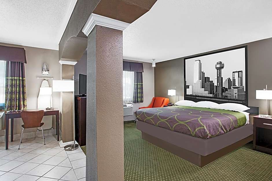 The Super 8 by Wyndham Bedford DFW Airport West offers a variety of room types. These include King Studio Suites, 1 King Bed Mobility/Hearing Accessible Rooms, Queen Rooms with two Queen beds, King Rooms, and 1 Queen Bed Mobility/Hearing Accessible Rooms. All rooms are non-smoking and range in size from 248 sqft to 269 sqft. The accommodations range from 2 adults and 1 child to 4 adults and 3 children, depending on the room type.