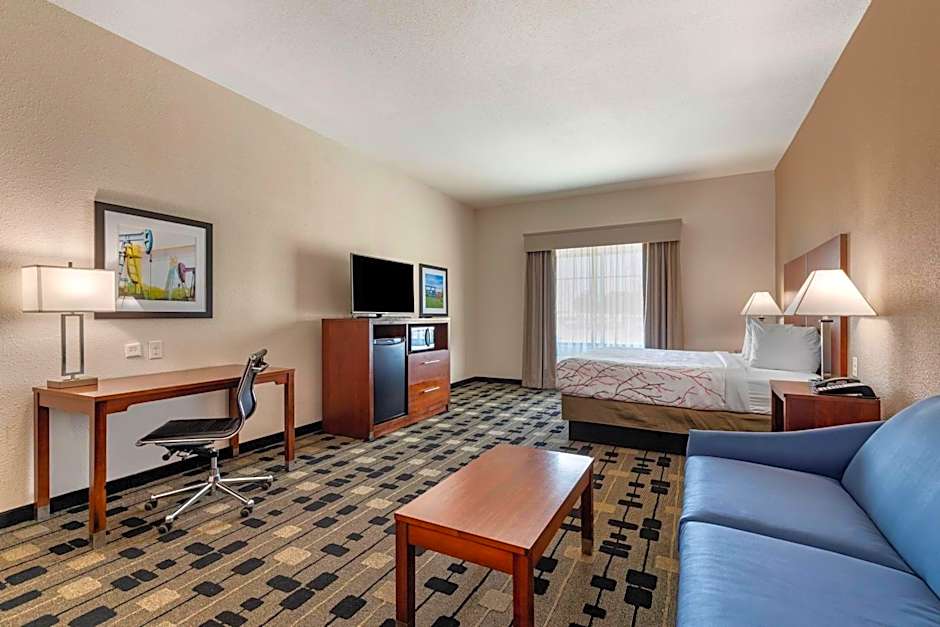 As you step through the doors of the , you’ll be greeted by a cheerful team at the 24-hour front desk, ready to cater to your every need. The hotel boasts a range of fantastic amenities: keep fit in the well-equipped fitness center, relax in your air-conditioned room, or grab a drink at the bar after a day of exploring. Plus, enjoy free Wi-Fi and on-site parking, making it easy to stay connected and drive around the beautiful Texas landscape without a hitch.