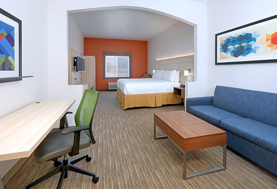The Holiday Inn Express Hotel & Suites Burleson - Fort Worth offers a variety of rooms including King Rooms, Queen Suites, King Suites, Queen Rooms with Two Queen Beds, Standard King Rooms, King Rooms with Hearing Accessibility, and Rooms selected at check-in. All rooms are non-smoking and have a size of 323 sqft. The occupancy ranges from 2 adults and 1 child to 6 adults and 5 children. The rooms feature different bed configurations, such as King size beds, Queen size beds, and sofa beds. Smoking is not allowed in any of the rooms.