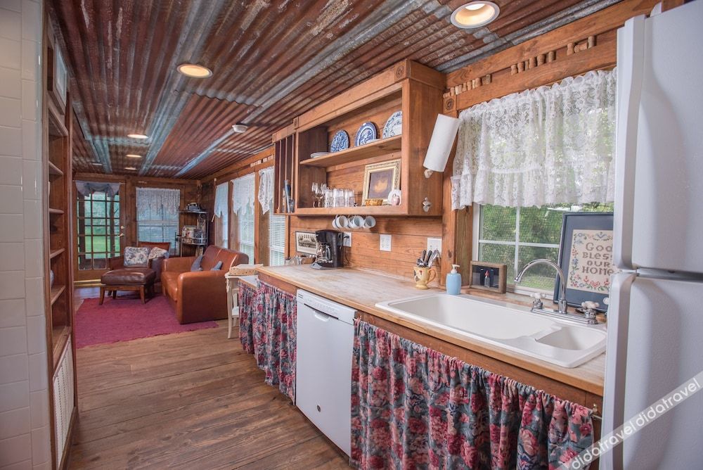 Everything. It's located in the woods, but still only about an 8-10 drive to the city. Quiet with wildlife frequently walking the area. I saw rabbit and deer while here. The lodge I stayed in was everything. Setup like a studio apartment with everything open and nicely arranged. I give them a 20 out of 10!! Great staff and clean grounds. I will be back!!