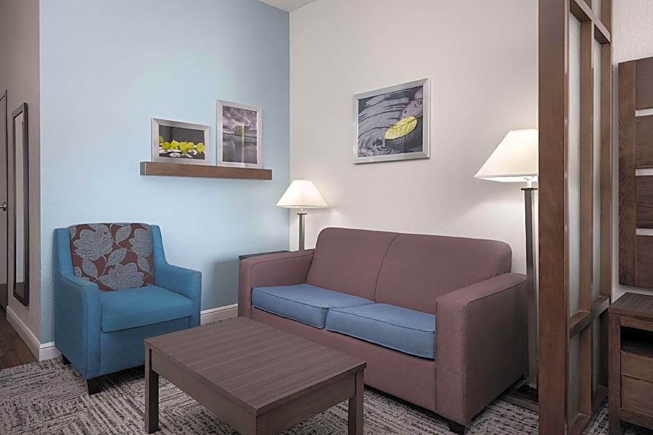 Location was perfect - close to the relatives we were visiting and also close to grocery store, gas, restaurants and pharmacies. The staff was incredibly friendly - special shout-out to the breakfast attendant/manager. Room was clean and in great condition. Was happy to see basic toiletries in the bathroom and extra availability of sundries in the reception area.