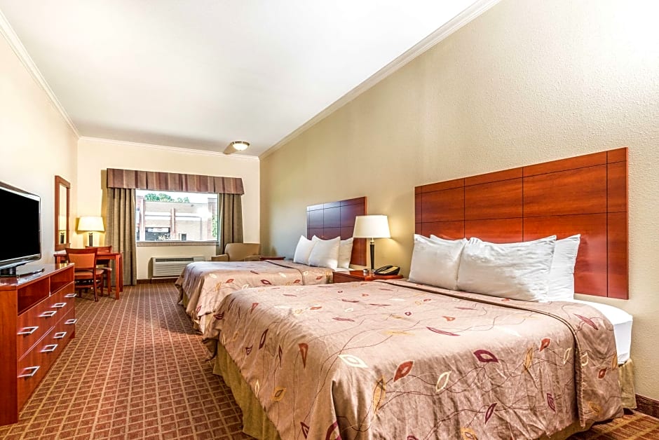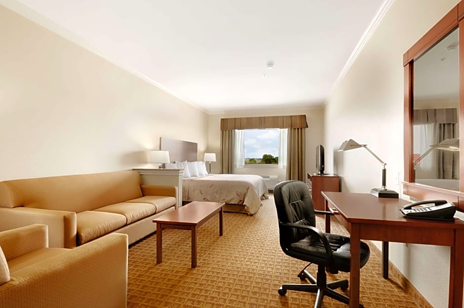 The Ramada by Wyndham College Station offers a variety of room types including Suites, Quadruples, and Doubles. All rooms are non-smoking. The Suites are spacious with a room size of 377-463 sqft and have either a King size bed or a combination of a King size bed and a sofa bed. The Quadruple rooms feature two Queen size beds. The Double rooms have a smaller size of 334 sqft and consist of a King size bed.