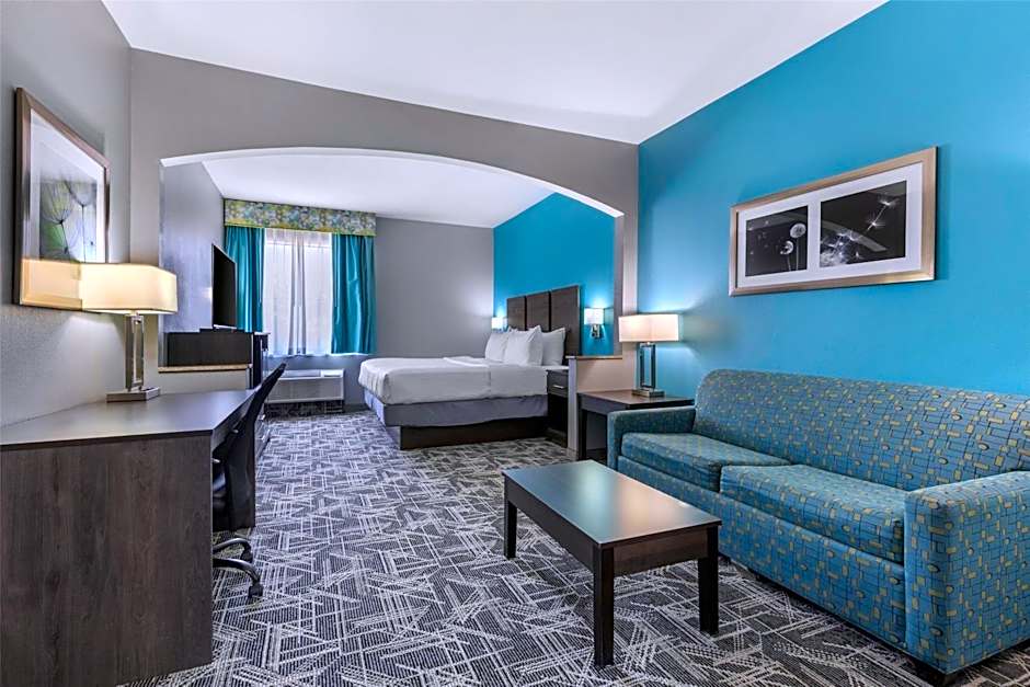The Best Western Executive Inn Corsicana offers a variety of room types including King Rooms with Bathtub, Queen Rooms with Bathtub, Queen Rooms with Two Queen Beds, King Suites with Sofa Bed, and King Rooms. Smoking is not allowed in any of the rooms. The occupancy ranges from 2 adults and 1 child to 4 adults and 3 children. The bed sizes vary with options like King size beds, Queen size beds, and Sofa beds.