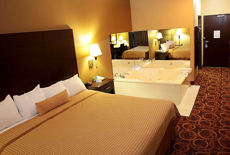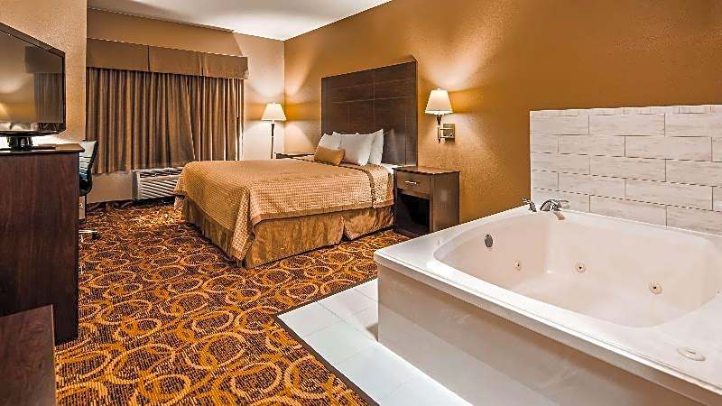 At the Best Western Northwest Inn, there are several types of rooms available. These include Queen Rooms with Two Queen Beds and Roll-In Shower - Mobility Access/Non-Smoking, King Rooms with Hot Tub - Non-Smoking, King Rooms with Whirlpool - Mobility Access/Non-Smoking, King Rooms - Non-Smoking, King Rooms - Mobility Access/Non-Smoking, and Queen Rooms with Two Queen Beds - Non-Smoking. The rooms range in size from 301 to 334 sqft and all have non-smoking policies. The rooms can accommodate 2 adults and 1 child, or 4 adults and 3 children, depending on the room type.